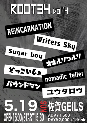 OPEN/16:00 START/16:00 前売/3,500 当日/4,000 (要1ドリンクオーダー) |