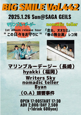 【BIG SMILE Vol.442】 マリンブルーデージー 1st album release tour “この日々をお守りに” nomadic teller「走れ、オオカミ」「春の舞台裏」レコ発 |